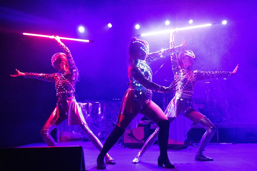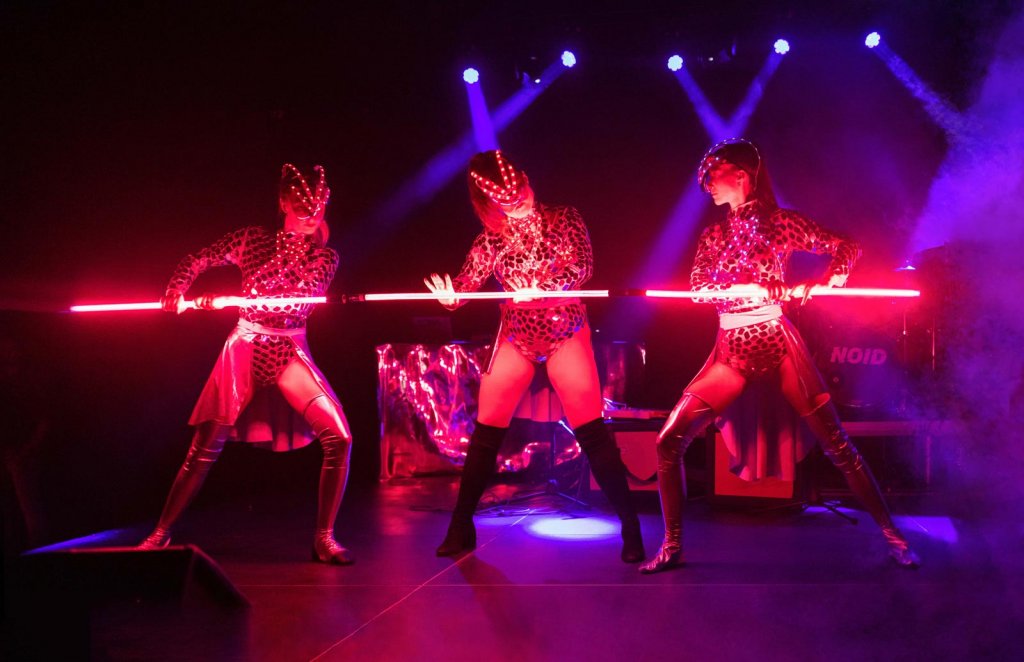 Hlavním bodem akce byla světelná show, kdy jsme kostýmy umělců vyzdobili zrcadly a celou show jsme obohatili o LED programovatelné prvky kostýmů a laserové efekty.
