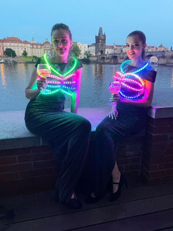 Svítící hostesky se stolem pro welcome drink, ohnivá show, zrcadlový pár a programovatelné svítící vázy. Další z komponovaných programů kombinující jak show, tak doprovodný program jsme připravili pro nádhernou restauraci Bricks kousek od Karlova Mostu v Praze.